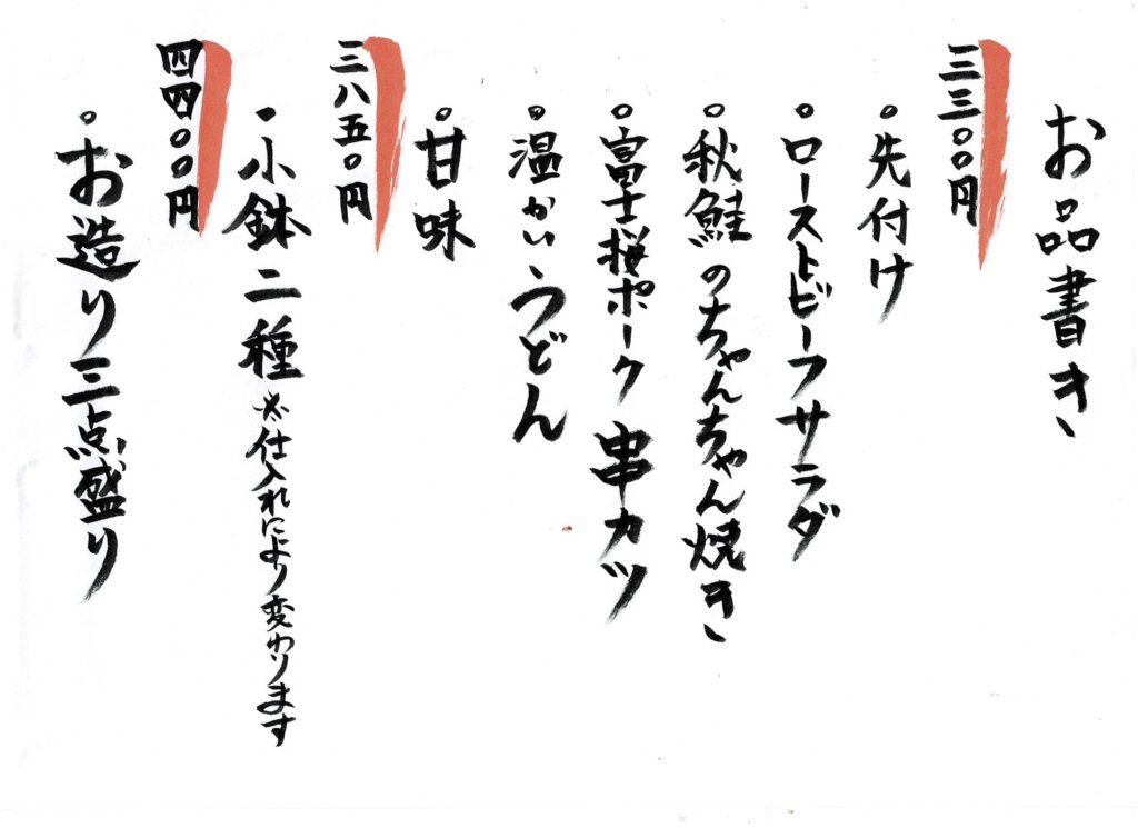 宴会メニューです、スタンダードな3300円から3850円.4400円(税込み)とご用意しております♪ 飲み放題(税込み2200円)は最初のドリンク提供してから90分後ラストオーダーとなります。