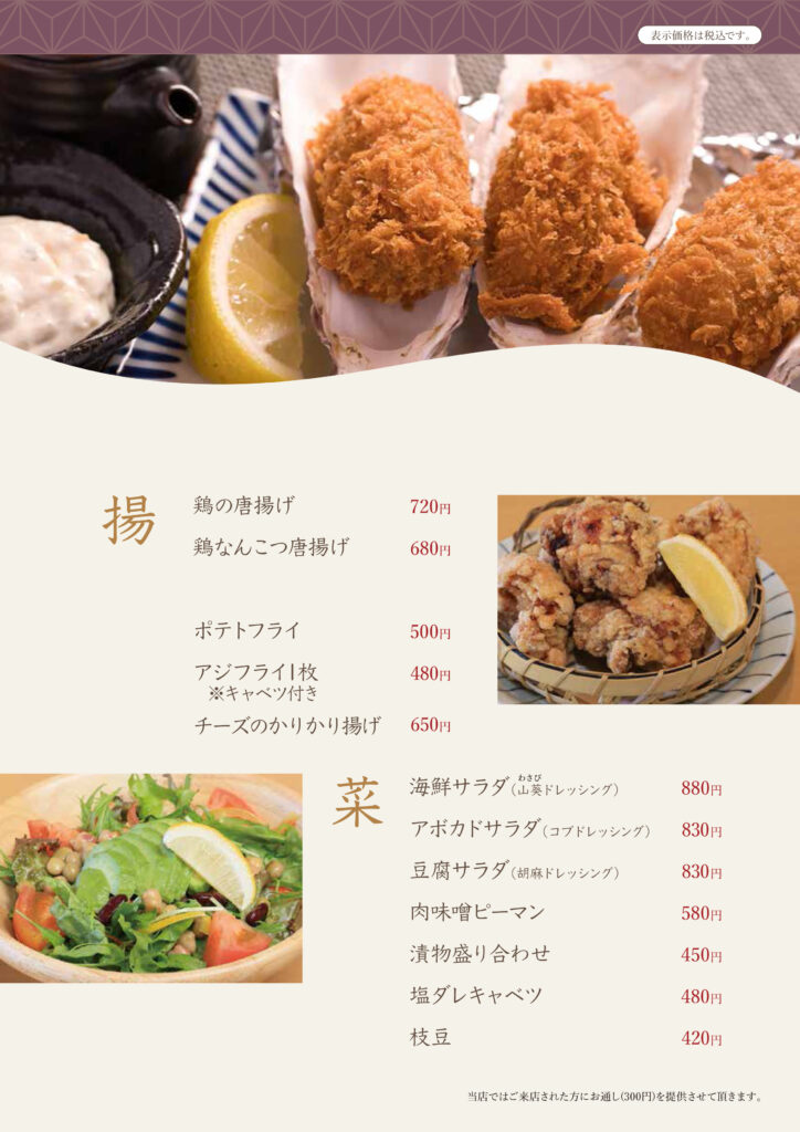 - 五点盛り ¥650- 七点盛り ¥1.030-
