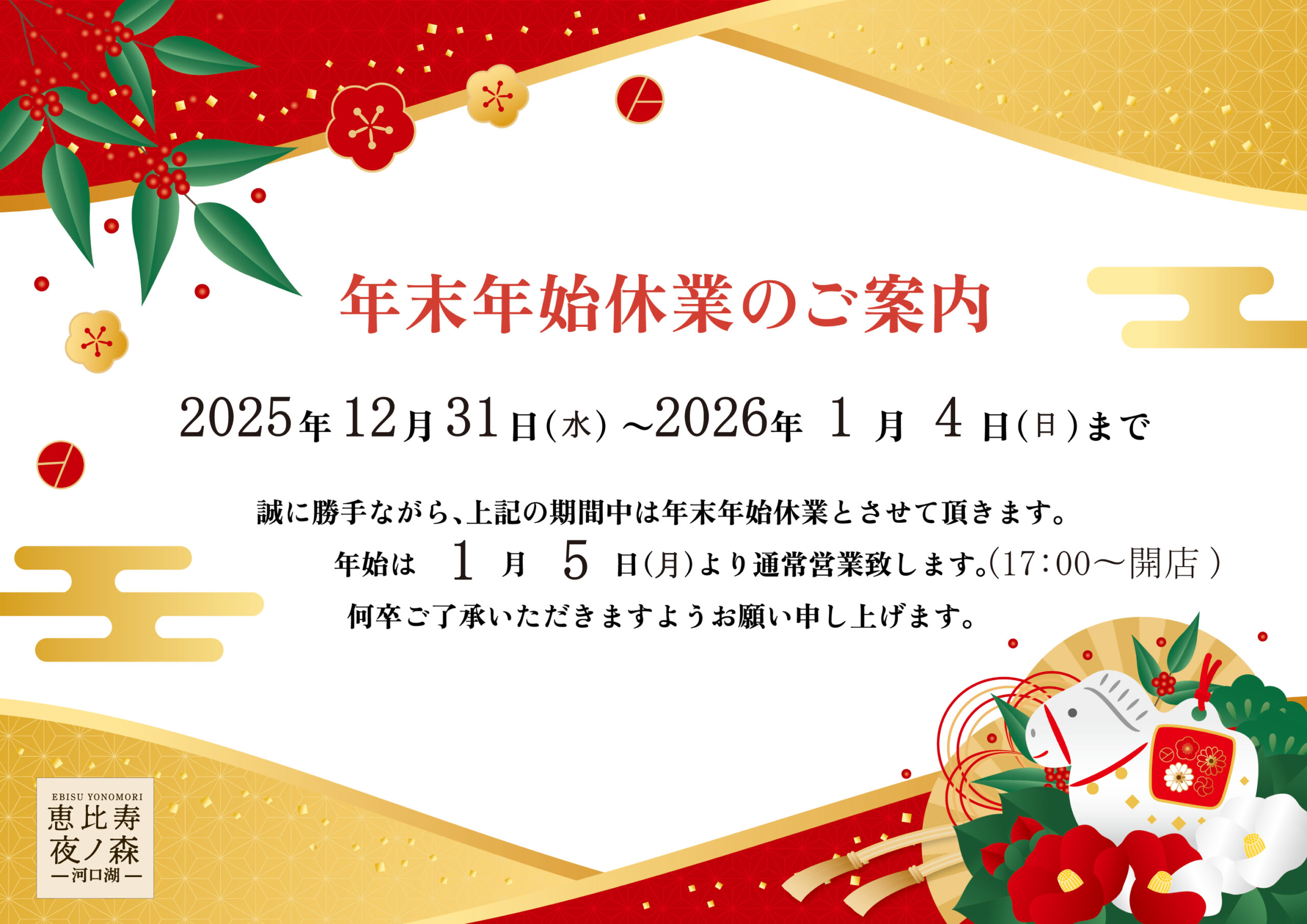今月は12/30(火)が最終営業日にて年明けは1/5(月)ディナータイムからの営業開始となります。